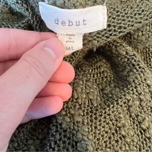 NWOT. This beautiful forest green cardigan from Debut is perfect for layering in any season. With a relaxed fit in size M/L, it offers both comfort and style. The rich color and versatile design make it easy to pair with a variety of outfits, adding a cozy yet chic touch to your wardrobe. Ideal for casual or semi-formal looks!