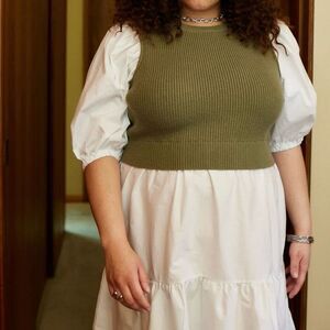 NWOT ELOQUII Elements Women's Plus Layered Look Poplin Dress with Sweater size 1