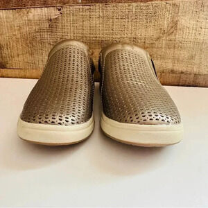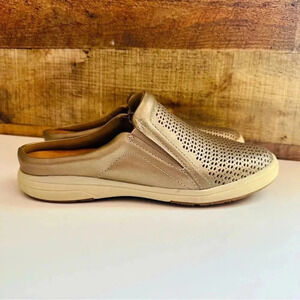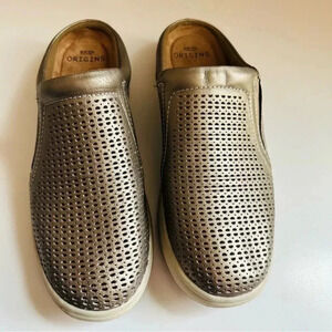 NWOT Earth Orgins Emilia Perfo Leather Slip On Mules In Platinum Metallic