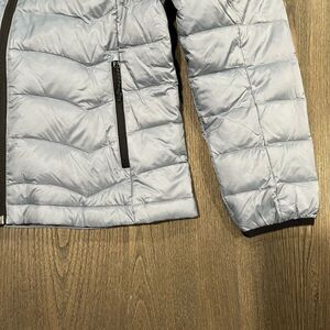 NWOT Eddie Bauer Women's Blue Black Colorblock 650 Down Puffer Coat Size S