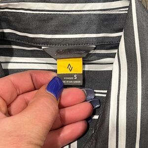 NWOT Eddie Bauer Womens Striped Button Down Shirt Green White Size S