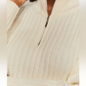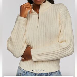 NWOT Forever 21 Small Cream Vanilla Ribbed Half-Zip Sweater