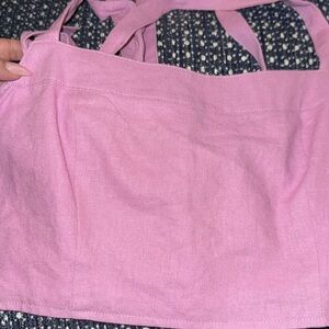NWOT-Forever 21 Smocked Pink Tie-Back Crop Top Size Large