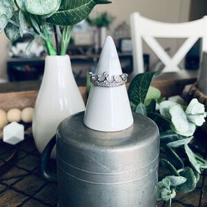 Brand new without tags. Beautiful silver band with gemstones in the crown. No size tag but fits like a 7