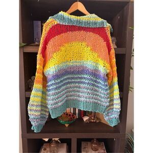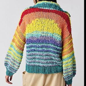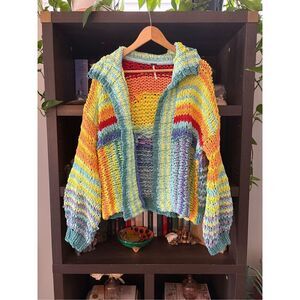 NWOT Free People Beach Market Cardigan Rainbow Loose Chunky Knit Small