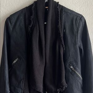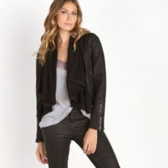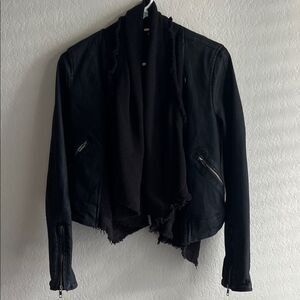 NWOT Free People Front Draped Coated Denim Moto Jacket Black size 2