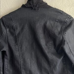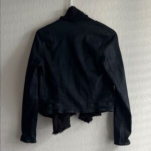Elevate your style with this sleek black denim jacket. Perfect for any occasion, this jacket offers both comfort and fashion-forward design.