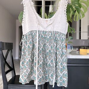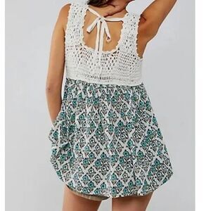 NWOT Free People Honey Pie Babydoll Tunic Tank Crochet Boho Cotton Prairie