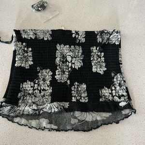 NWOT Free People Poppy Tube Top Black Floral Cropped L Removable Straps Smock
