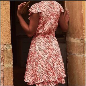 Be flirty and free in this sweet wrap dress from Free People, ruffled and printed with fluttery short sleeves.