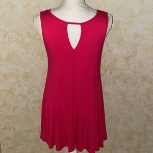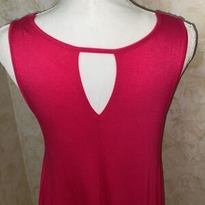 This cute top has a keyhole front and back. The draping is flattering to the waistline. A great summer top!
