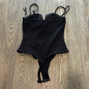 NWOT Guess Los Angeles Black Corset Bodysuit V-Underwire Spaghetti Straps Sz M