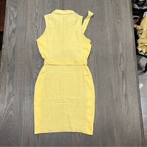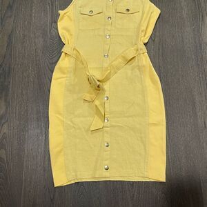 NWOT Guess Los Angeles Linen Blend Yellow Collared Utility Tie Waist Dress Sz M