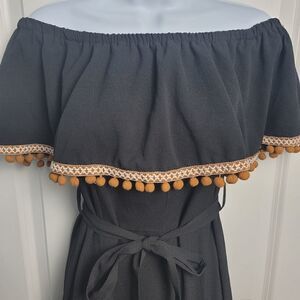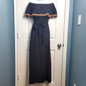 New Without Tags off the shoulder dress. Generous slit in the front. Self tie in the front for a flattering fit.