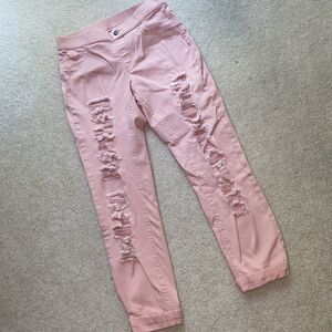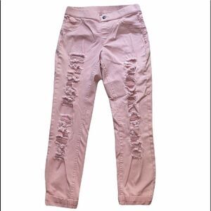 These jeans from Hue are in a dusty rose pink. They are distressed with holes for this season’s style.