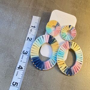 NWOT Huge raffia wrapped dangle earrings. Measurements are in the photos