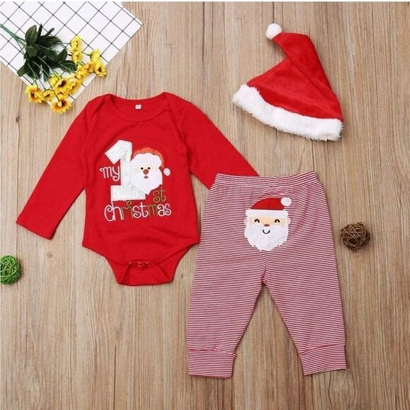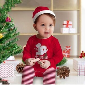 NWOT Infant Size 0-6 Month (Euro 70) BFUSTYLE 3-Piece Infant My First Christmas One-Piece Romper, Pants, and Christmas Hat Set