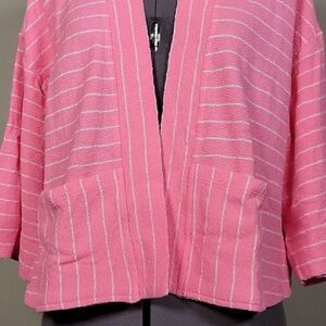 *Features: kimono style, striped, drop-shoulder sleeves, open front, lower patch pockets, straight bottom hem