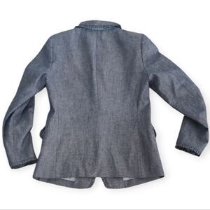Elegant chambray blazer by J. Crew. Features a single button and tailored fit. Perfect for versatile styling.