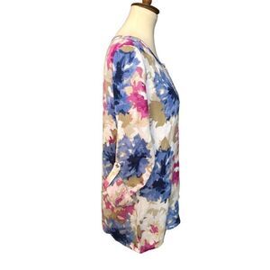 NWOT JM Collection Womens Blue Pink Floral 100% Linen Tunic
