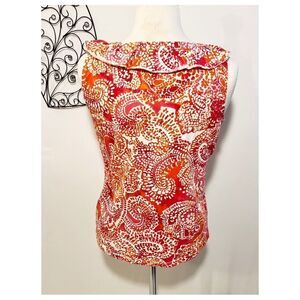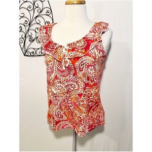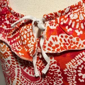 Awesome orange, white and shades of pink and red. Ruffled collar with elastic and shoelace style