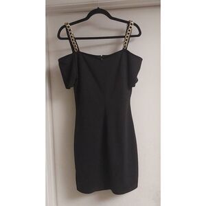 NWOT~JustFab Black & Gold Chain Shoulder Strap Accent Mini Dress Sz L