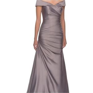 Stunning Platinum Mother of the Bride/groom evening gown. Ruched, form flattering, perfect for upcoming autumn weddings.