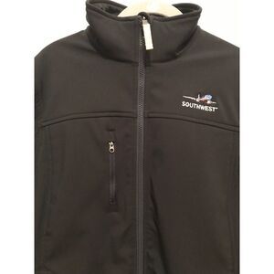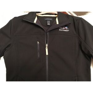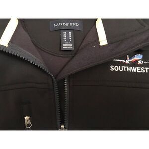 Brand New Land’s End All Weather Southwest Jacket in men’s SZ M. Very nice navy men's jacket with yellow sticking on sleeve and neck with Southwest Spirit plane logo and "box letter" SOUTHWEST on right front. All weather zip up the front with adjustable cuffs to keep wrist and arms warm.