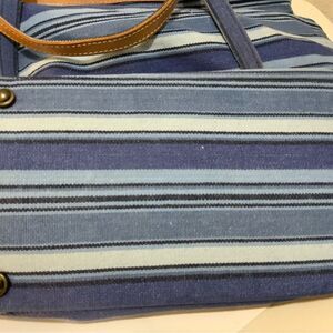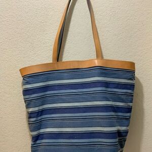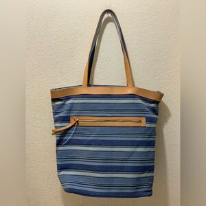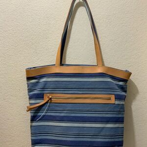 NWOT Large Blue Canvas Tote with Leather Straps – Top Zip
