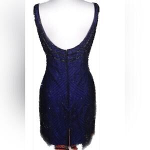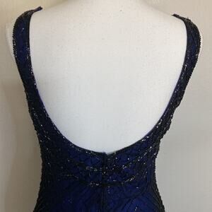 NWOT Laurence Kazar Blue Black Beaded Sequin Mesh Scoop Back Woman’s Dress PM