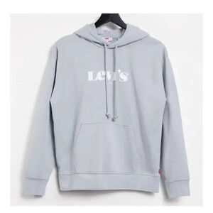 NWOT Levi’s Retro Standard Graphic Logo Spell Out Hoodie S Subtle Gray Pullover