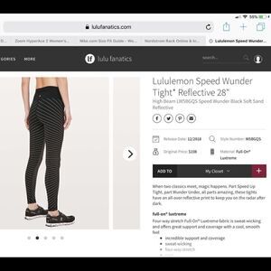 NWOT Lululemon Speed Wunder Tight* Reflective 28"(High Beam LW5BGQS Speed Wunder Black Soft Sand Reflective) Lululemon 4way stretch Full-On® Luxtreme fabric is sweat-wicking and offers incredible support and coverage. sweat-wicking, smooth handfeel, naturally breathable. Drawcord: Customize the fit. Waistband storage: Pocket on the waistband holds your key or card. Hugged sensation: Engineered to feel like a comfortable embrace throughout—it holds you close and moves with u. Inseam: 28" size 2.