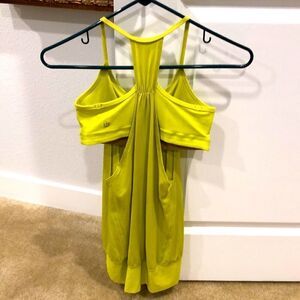 NWOT Lululemon no limits neon yellow workout top, size 4, built in bra, wide band at hem, spaghetti strap tank, absolutely excellent condition! no flaws at all!