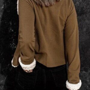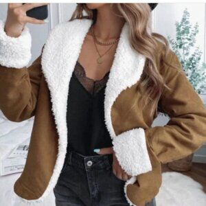 NWOT-M🤎–🤍Brown-M-Sherpa lined jacket / Faux-shearing jacket-white collar