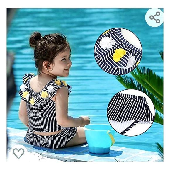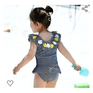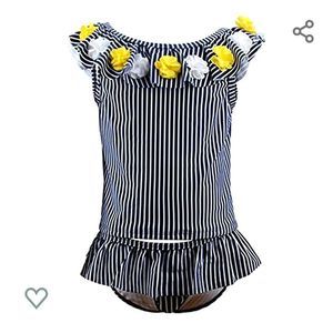 NWOT MIA BELLA TANKINI POMS BLUE/WHITE WITH YELLOW FLOWERS SIZE 18/24 MTHS TRUE TO SIZE