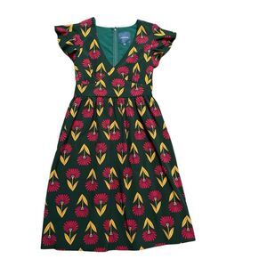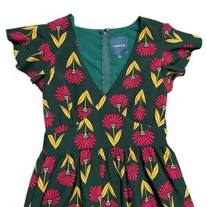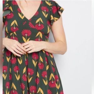 NWOT MODCLOTH Fabulous Floral Fit and Flare Dress Green Has Pockets Size Large