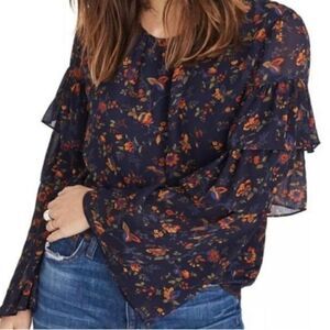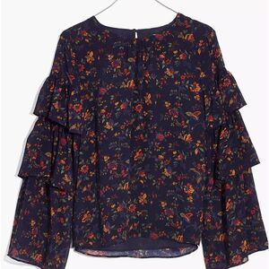 Madewell Climbing Vine ruffled sleeve top. Fully lined. Armpit-to-armpit 20”, sleeve 22” and length 23”. Brand new and never worn!