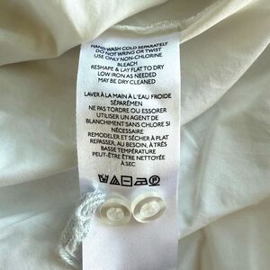 Crisp white cotton shirt tail w/ buttons coming out at the bottom