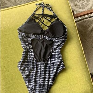 NWOT Massimo black and white printed one piece with halter neckline. Super cute and comfy! Never been worn, sexy cross hatch detailing across neckline.