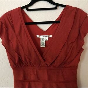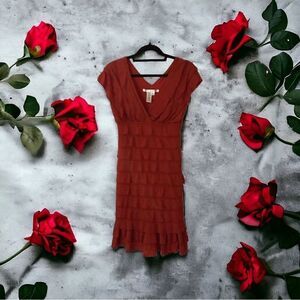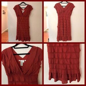 Max Studio very soft material dress. Burnt orange color ruffle fitted dress. Perfect for fall season!