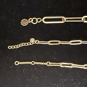 This is a set of 3 NWOT Mevecco gold tone paper clip style bracelets adjustable 8” long each.