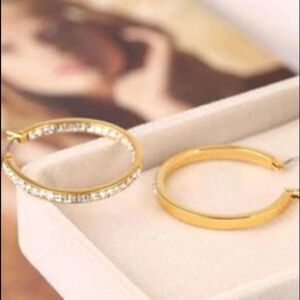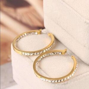 NWOT Michael Kors Gold Crystal Inside And Out Hoop Earrings