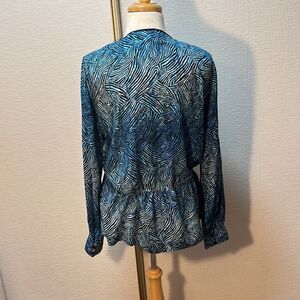Stylish women's top featuring a striking blue zebra print. Perfect for adding a bold touch to your wardrobe.