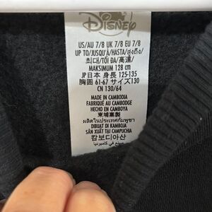 Size 7/8 Black sweatshirt featuring Mickey Mouse. Red and yellow stripes on sleeves. Disney World logo included. Disney Park Exclusive