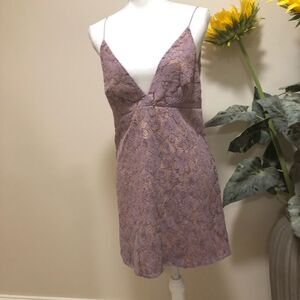 NWOT Mini Dress Size 12 Free People Purple Dangerous Love Plange Neck And Back