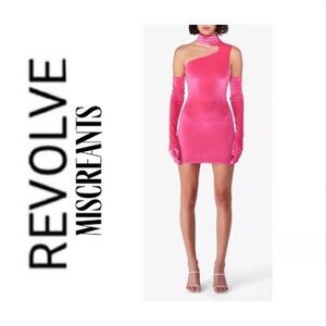 NWOT Miscreants x Revolve Pink Velvet Choker Mini Dress (No Gloves) UK8 US4