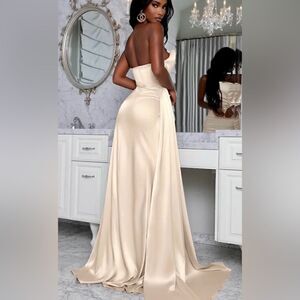 Chic, sexy and sophisticated, Monroe is the ultimate showstopper. It features a side sash and high leg slit on the side. The structured strapless bodice is pleated and has built in boning which accentuates the waist and helps to create an hourglass shape and allows you to go brakes