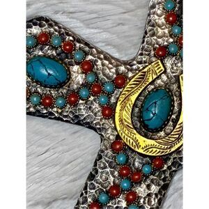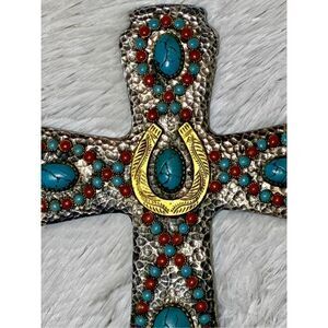 NWOT Montana West 14” Rustic Southwestern Turquoise Accent Horseshoe Wall Cross