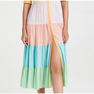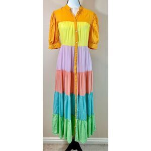 NWOT Never Fully Dressed Pastel Rainbow Panel Tiered Maxi Dress Women's