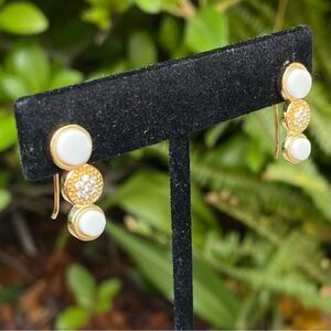 New Marcia Moran White/Gold Pave Set Rhinestone Ear Climber Earrings
